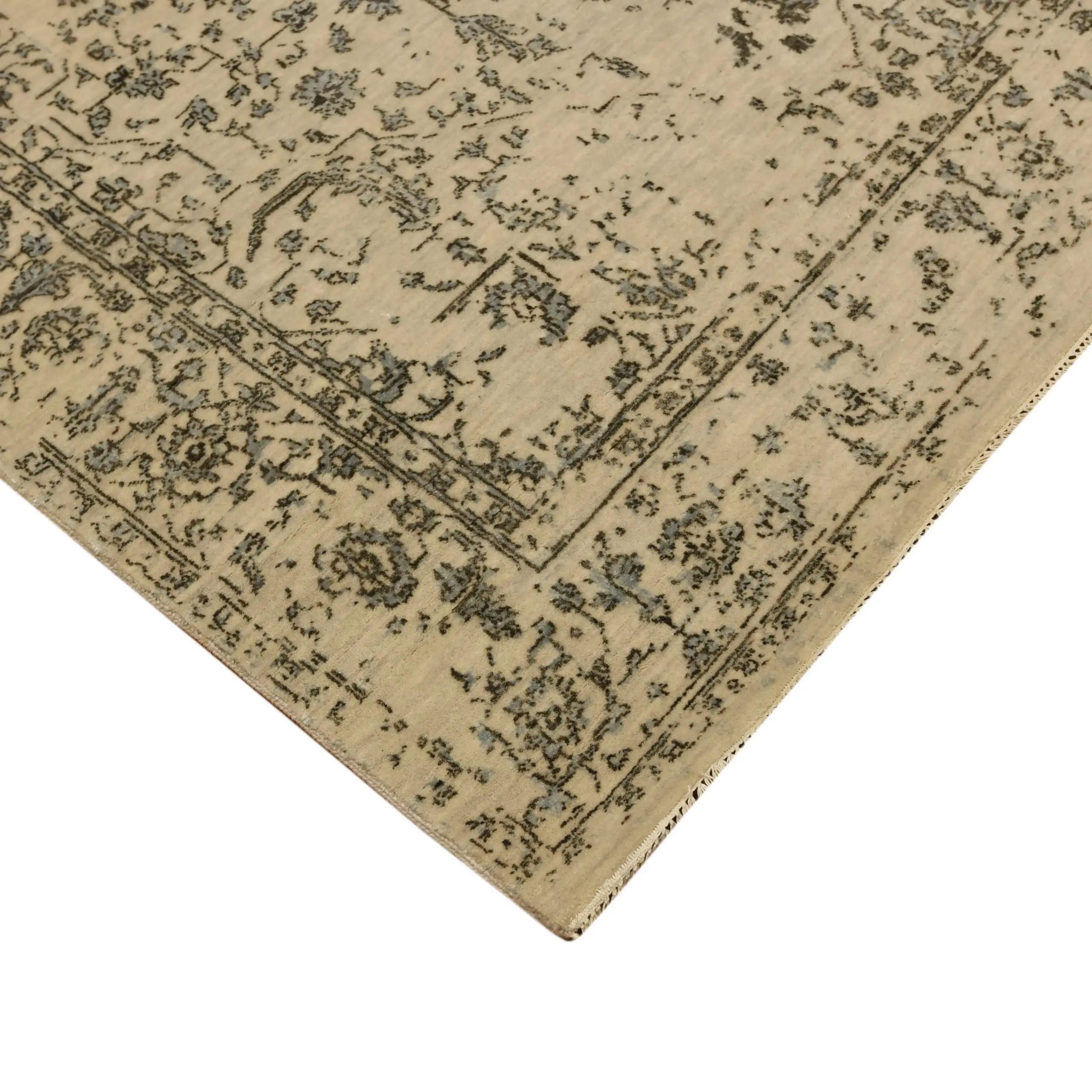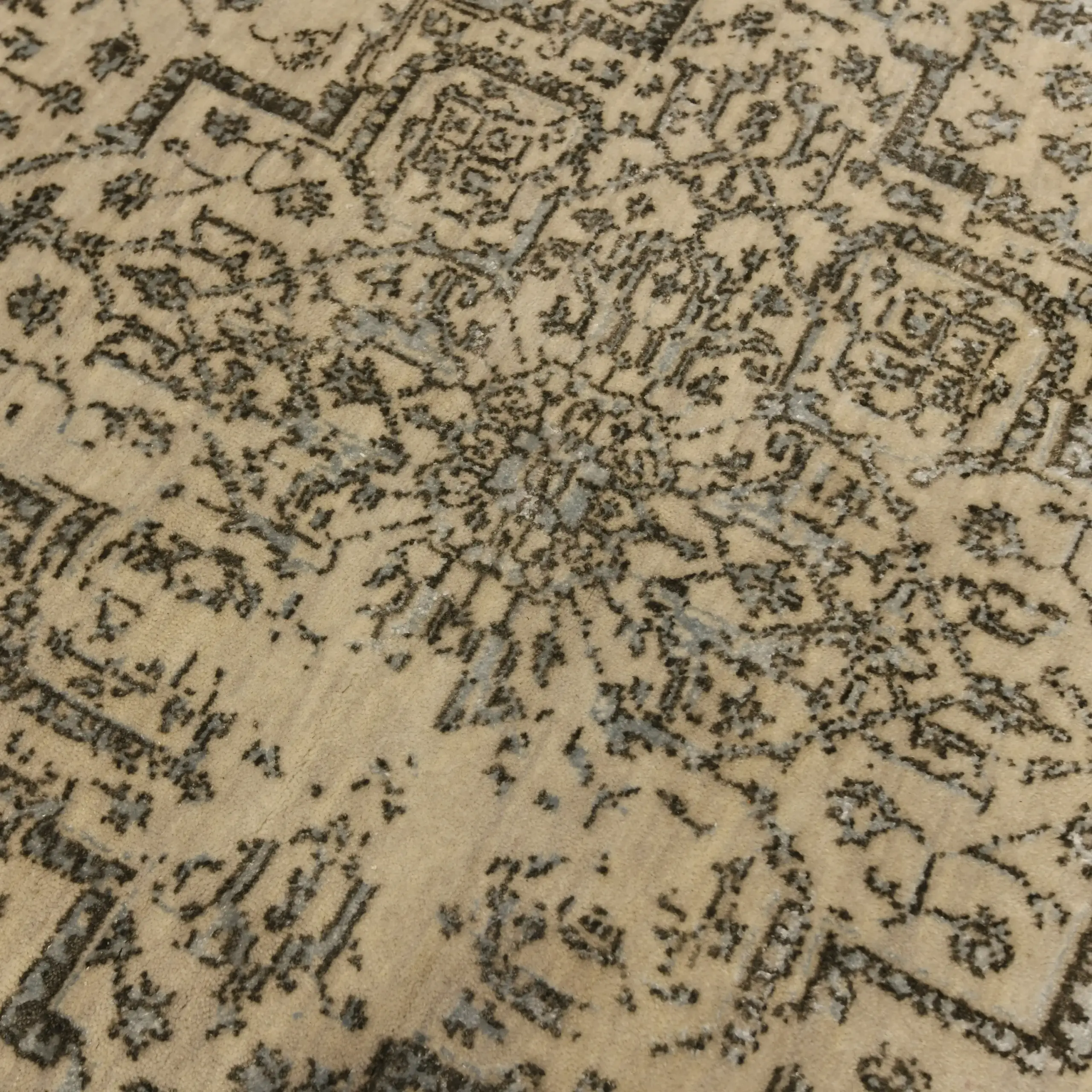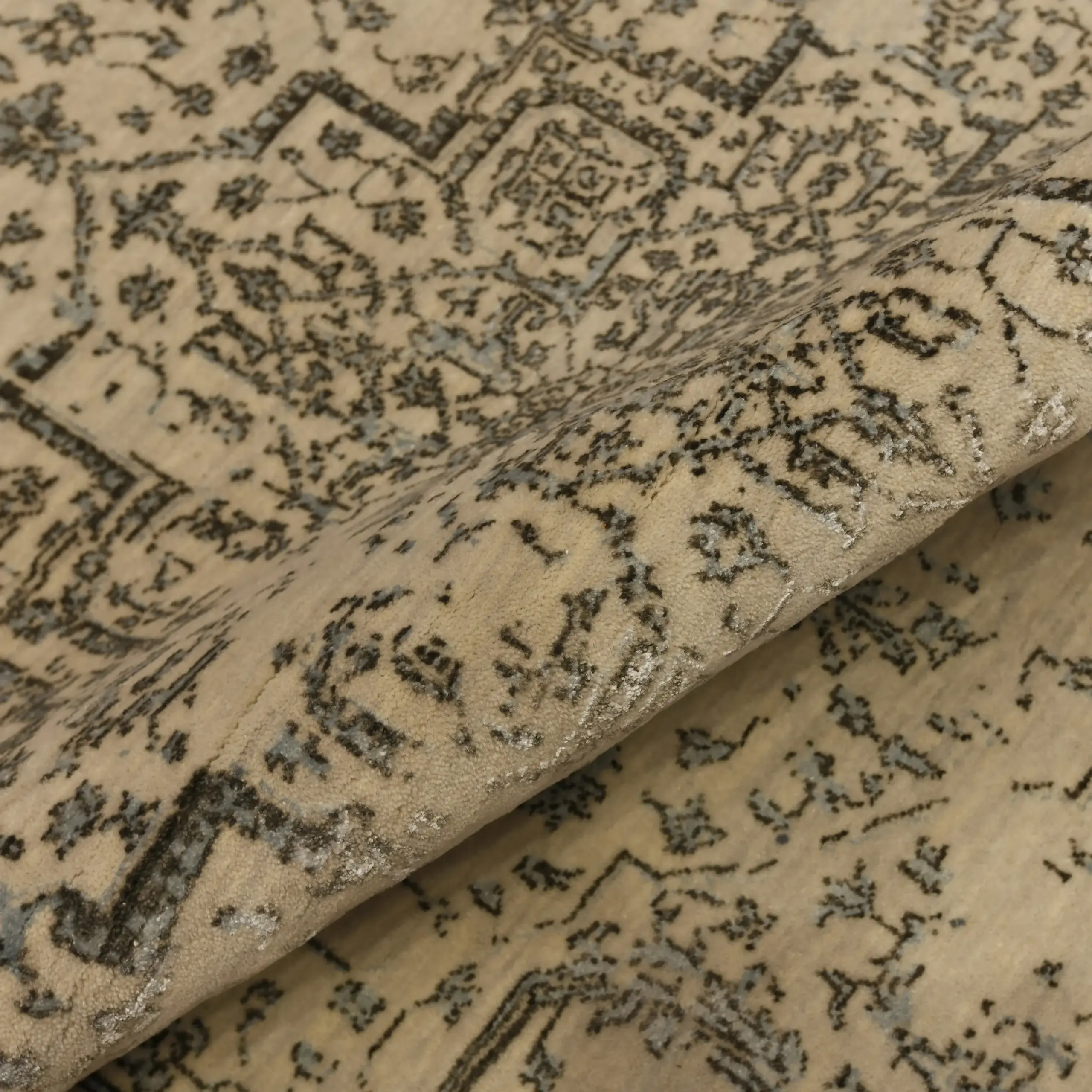 Get yourself contemporary luxury with Jaipur Carpet Studio. The Agaaz Celestial Frost Hand Knotted Rug marks the dawn of a new decade for sophisticated interior styling. The term “Agaaz” represents a fresh start, and this rug beautifully showcases the shift from traditional craftsmanship to contemporary designs. It contains a beautiful “erased,” or distressed, pattern in the fabric; a faded design that looks incredibly chic and acoustic. There’s not a single knot that isn’t hand-tied painstakingly. By combining premium natural wool with authentic silk, our craft masters have produced a wool and silk modern carpet that provides a visually stunning aesthetic and a welcoming soft touch.