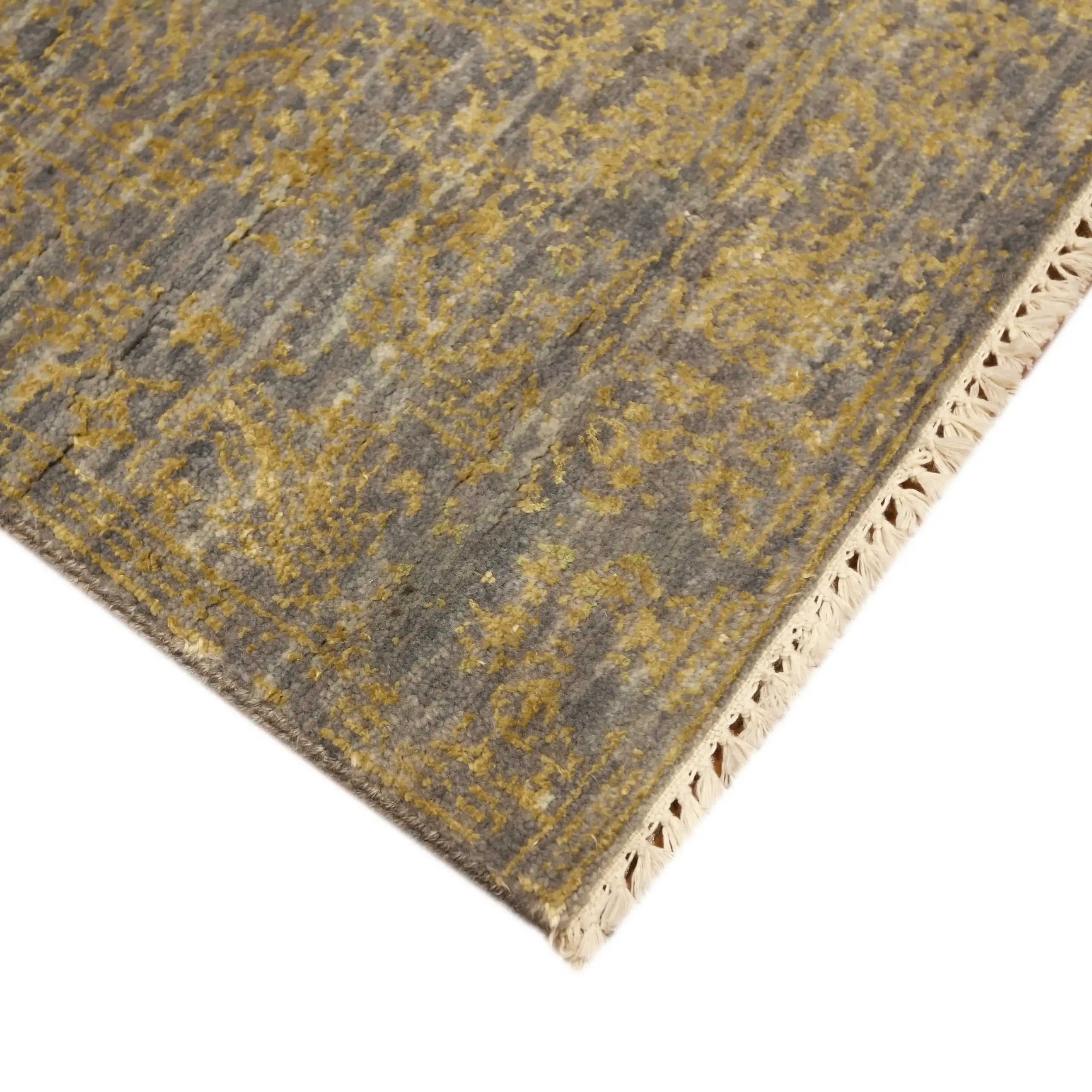 Welcome to Jaipur Carpet Studio. Named Agaaz, the word means a new beginning, and this piece is indeed a new chapter in high-end interior styling. The Agaaz Modern Hand Knotted Rug features a trendy transitional design, where classic oriental patterns are carefully faded to achieve this chic aesthetic. Our master artisans hand-tie each and every knot. This 81 KPSI handmade rug is incredibly durable and long-living because such density can only be achieved by the hands of super experts, bringing a masterpiece that withstands mega traffic.