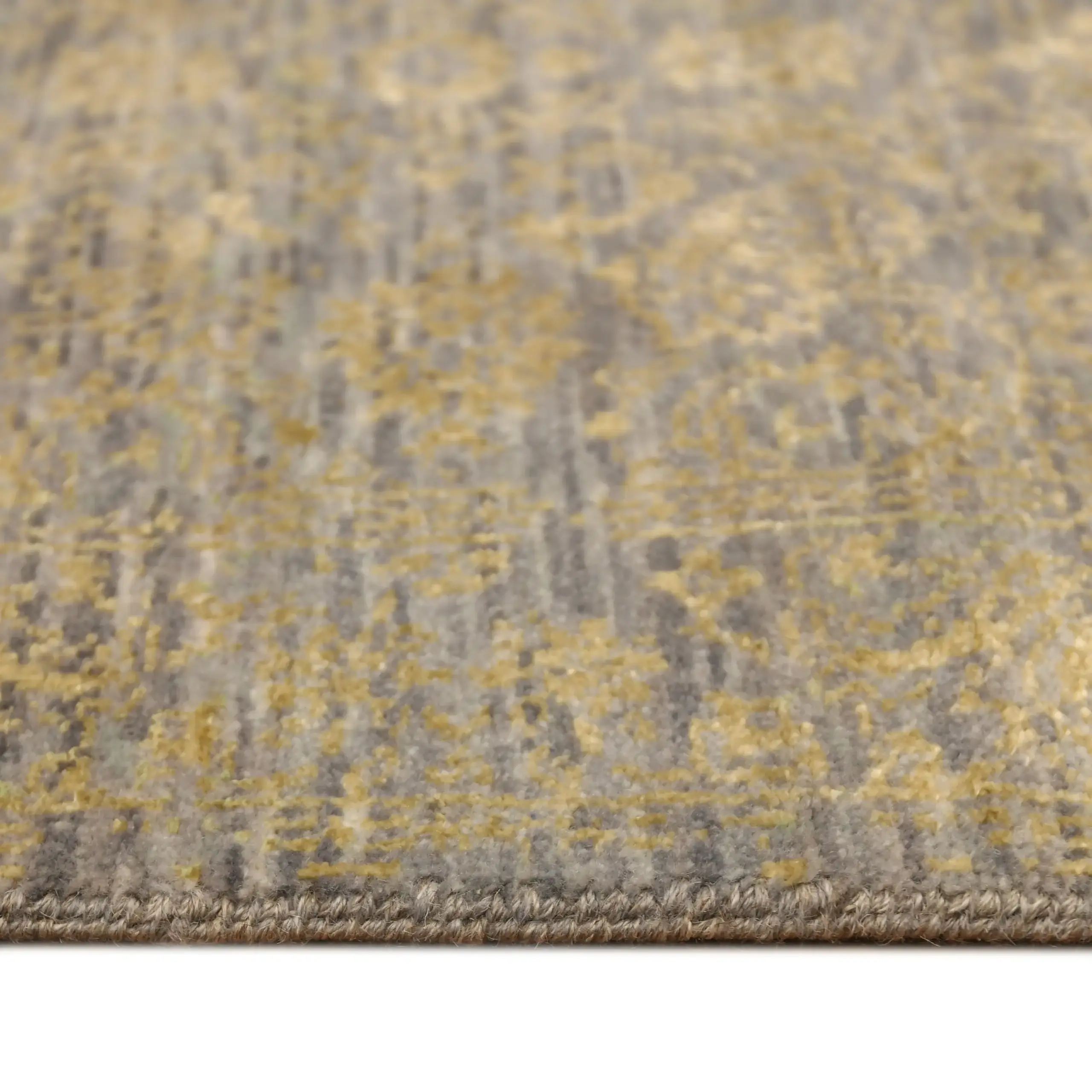 How do you style an erased or distressed rug? The Agaaz Modern Hand Knotted Rug is a must-have staple for ultra-modern homes and transitional aesthetics alike. Its neutral silver and beige shades pair phenomenally with modern glass coffee tables, neutral-colored sofas, and minimalist decor. The distressed pattern provides texture without completely taking over the room’s aesthetics. Offering individual sizes tailored to your requirements, we can create a custom size Agaaz rug as a showstopper for a large living space or a streamlined runner in an elegant hallway. (See more erased and transitional designs in our Jaipur Carpet Studio Modern Collection).