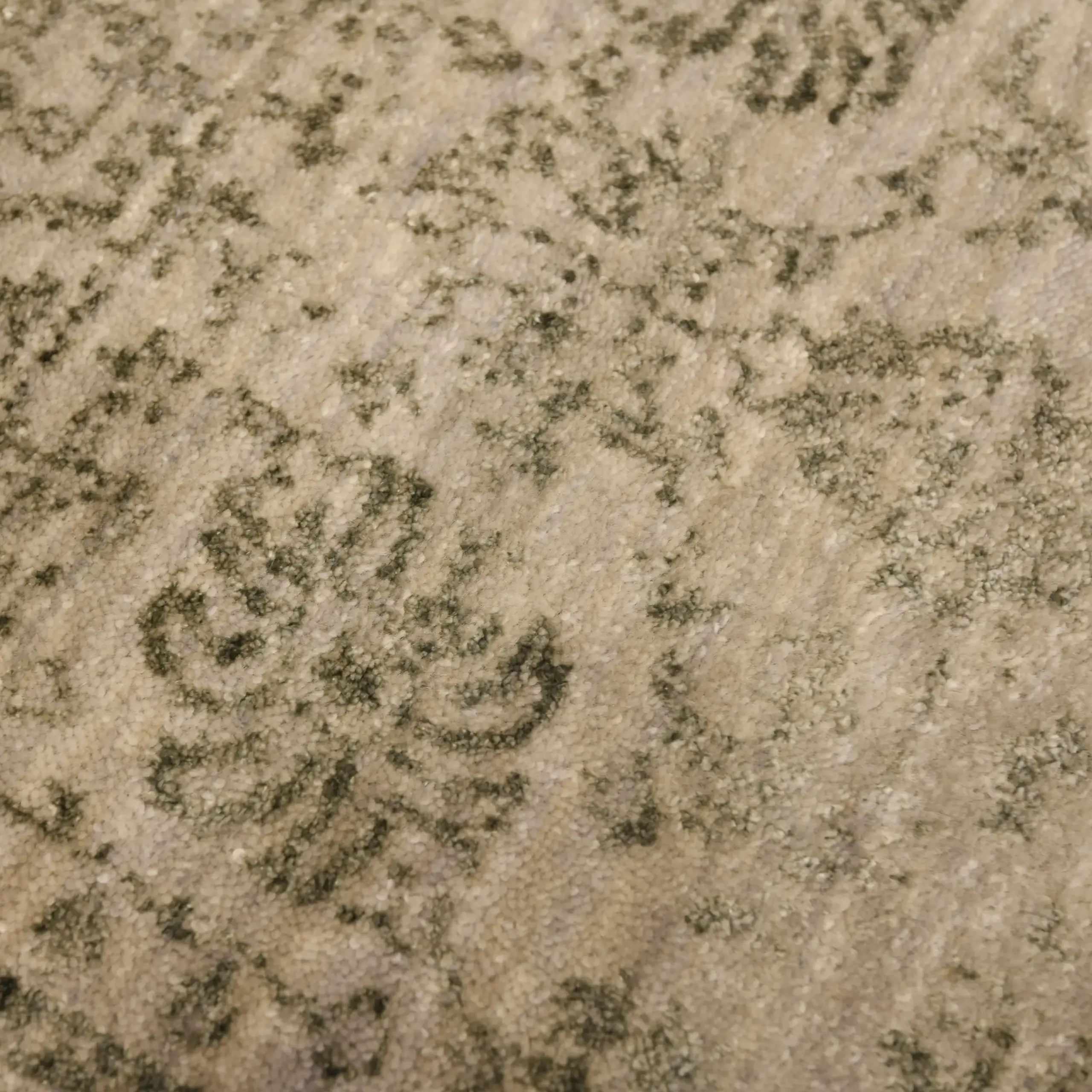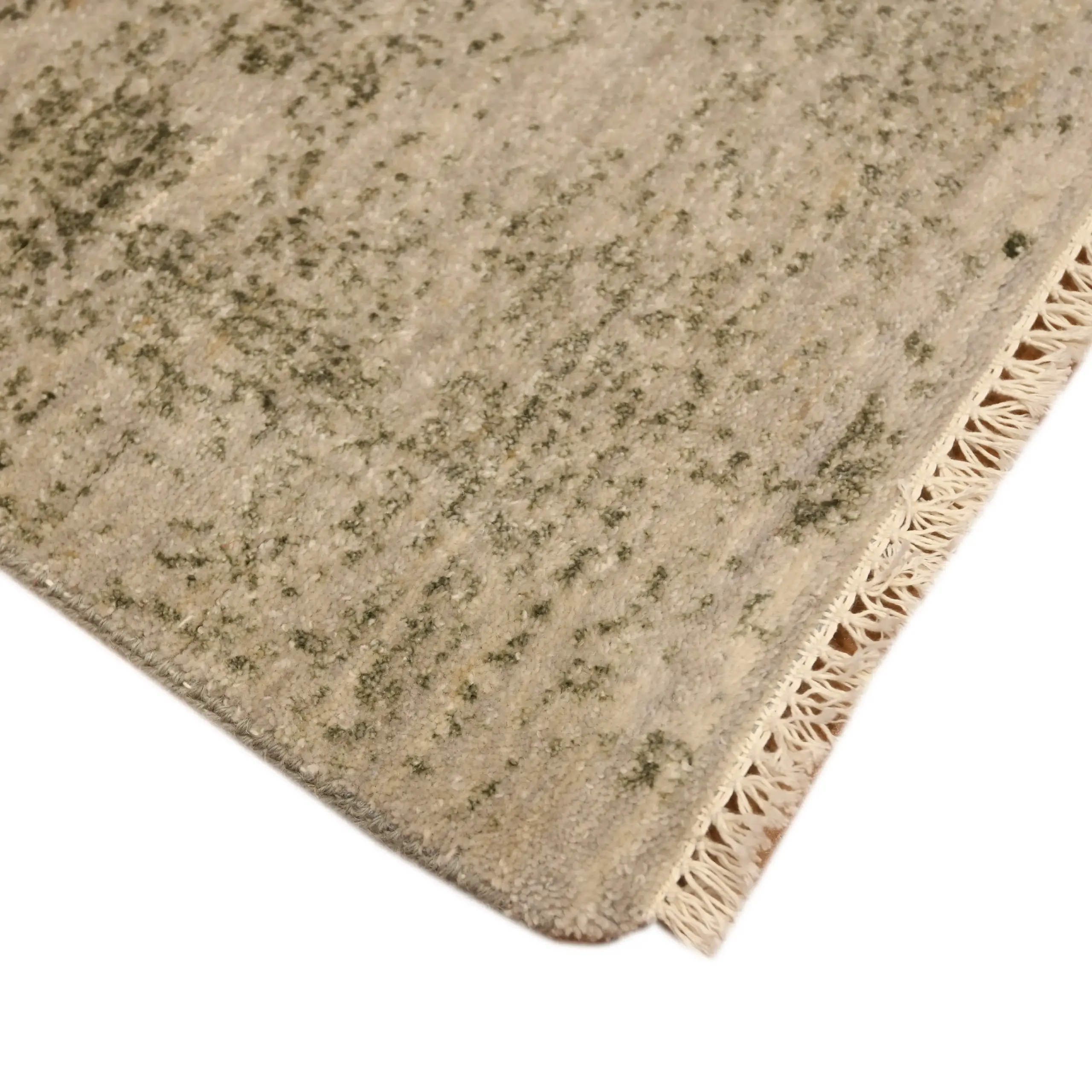 We are here with a floor art piece capturing the definition of timeless beauty. The Elysian Silver Mist Hand Knotted Rug is a stunning collaboration of old-world heritage with modern design aesthetics. Its worn, faded appearance creates a clean, sleek, and very smart look that instantly adds quiet luxury to any space. Every single knot is painstakingly tied by hand. Our master weavers have combined high-quality natural wool with genuine silk to form a modern vintage wool and silk carpet with extraordinary visual depth, beautiful subtle contrast, and an ultra-soft touch.