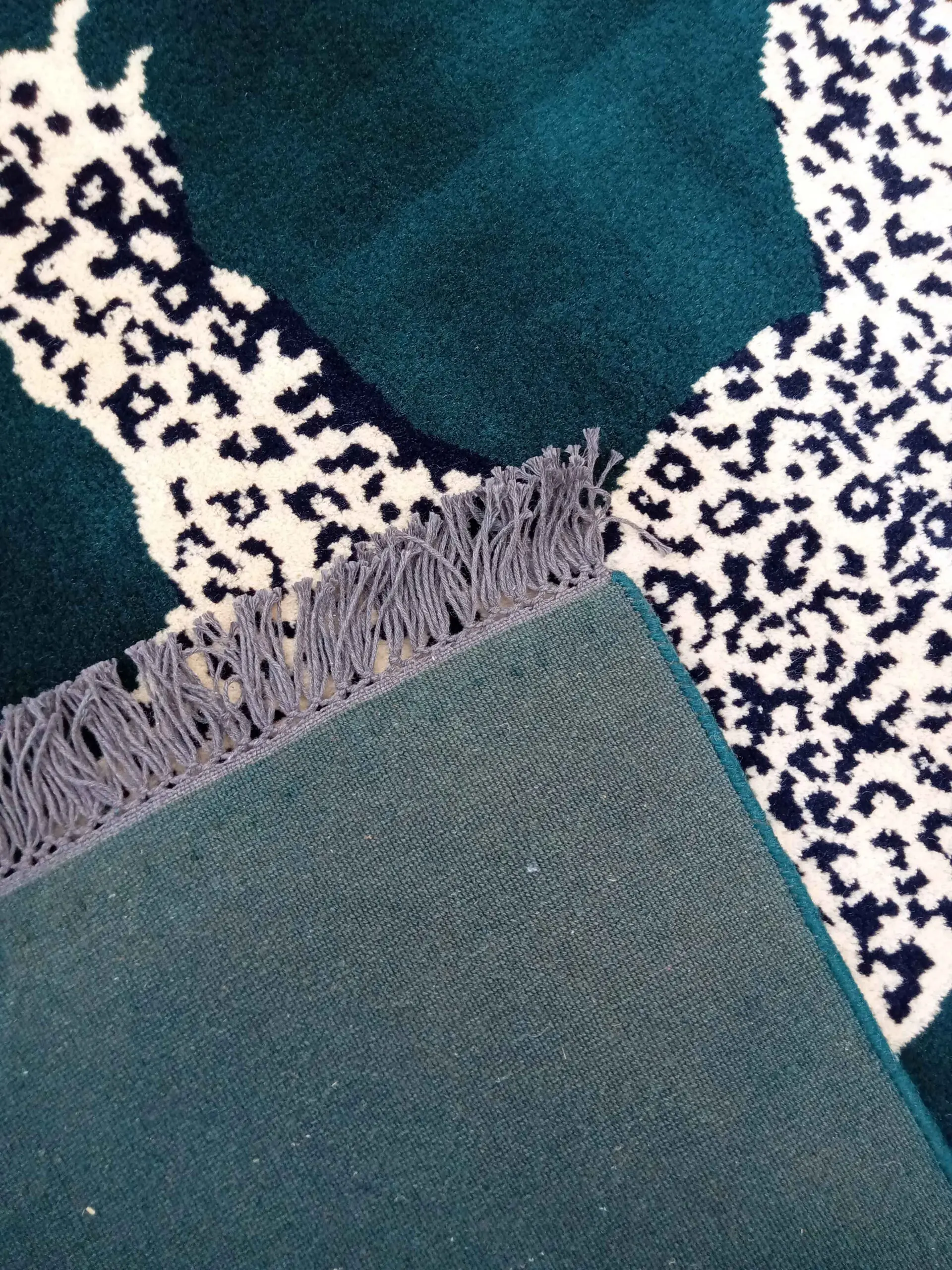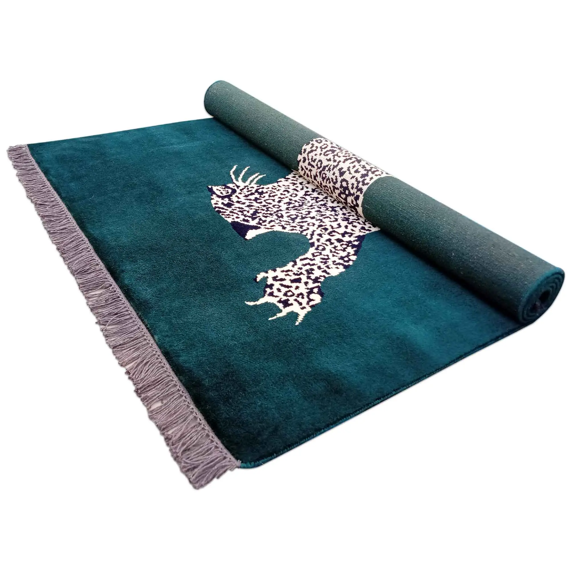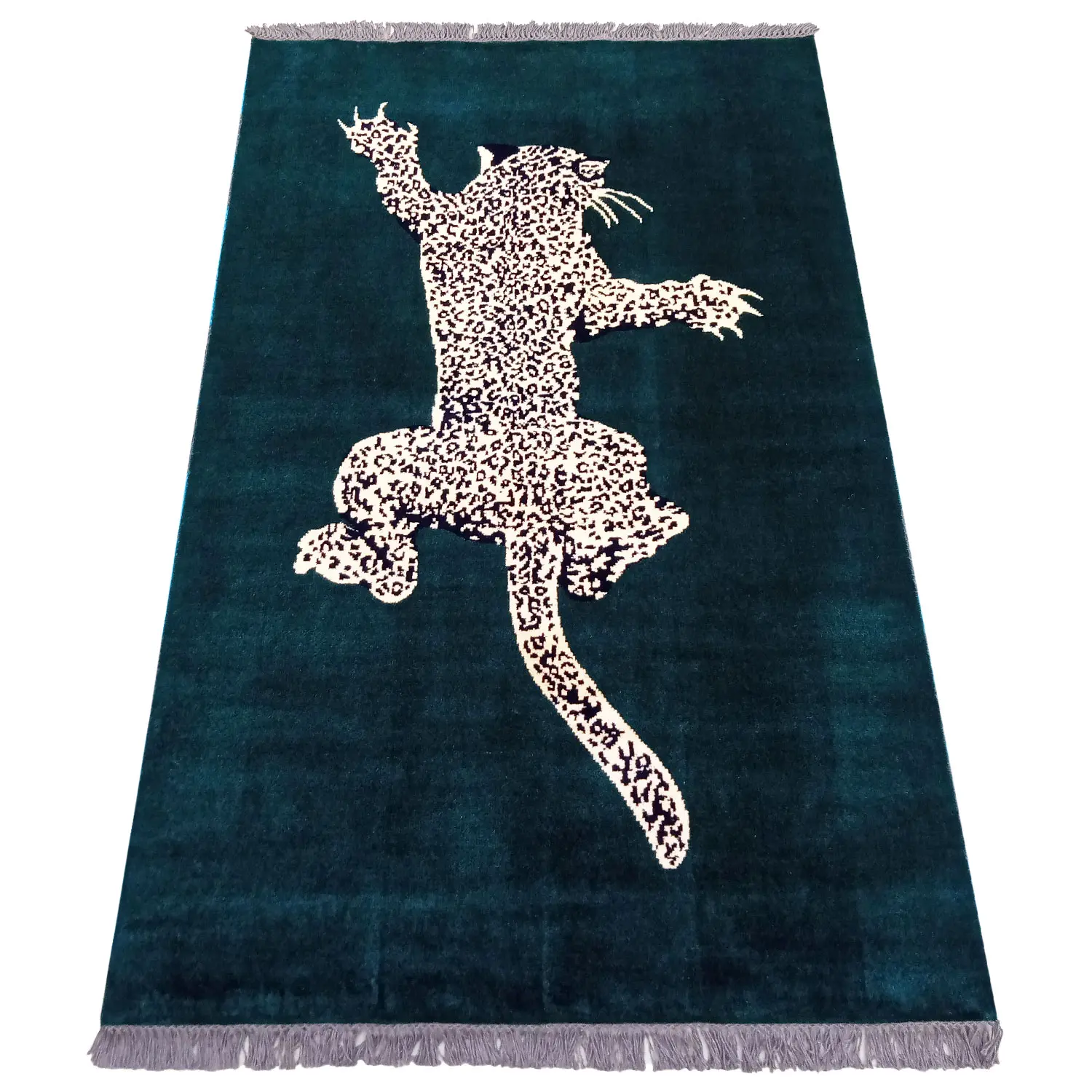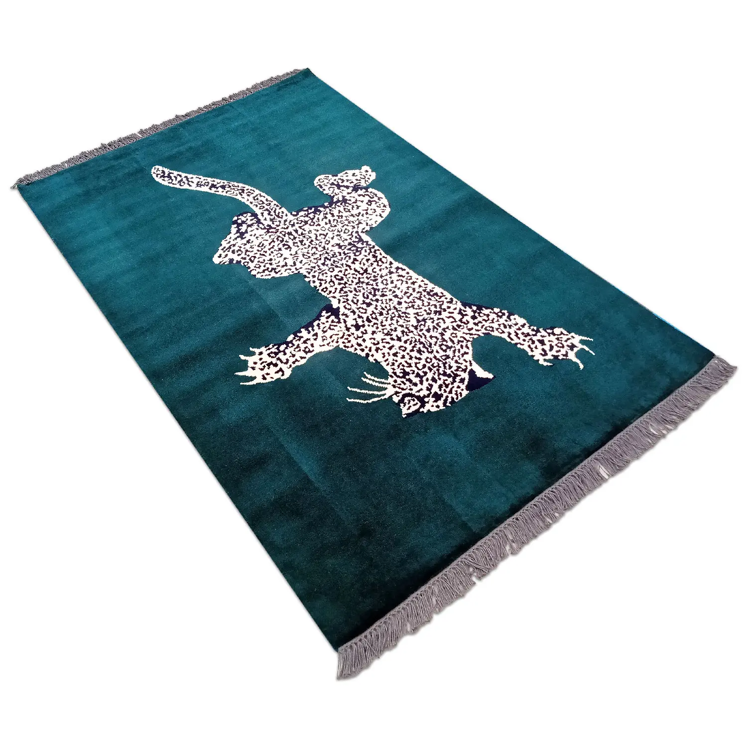 Maintaining your modern green leopard rug is incredibly simple. We recommend regular vacuuming without a harsh beater bar to protect the hand-tied knots. In case of accidental spills, blot the area immediately with a dry cotton cloth. Avoid harsh chemical cleaners to preserve the natural wool fibers. Our traditional washing methods ensure the vibrant green and gold colors are locked in and will remain beautiful for decades.