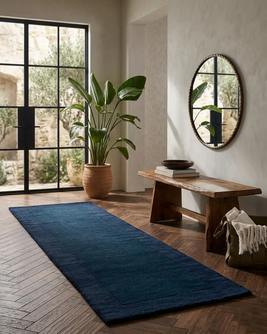 How do you style a rug that is so smooth and luxurious? The Opulence Velvet Touch Tufted Rug is an interior designer’s dream for monochromatic, ultra-modern, and glamorous homes. Because it lacks a busy pattern, it serves as the ultimate luxurious blank canvas. It pairs flawlessly with high-end materials like marble floors, velvet sofas, metallic brass accents, and crystal lighting. The subtle sheen of the wool adds depth to the room without overpowering it. Because we specialize in creating the perfect custom size solid luxury carpet, you can commission a massive, seamless piece for a grand bedroom or a plush runner for an elegant corridor. (Discover more solid and textured designs in our Jaipur Carpet Studio Luxury Collection).