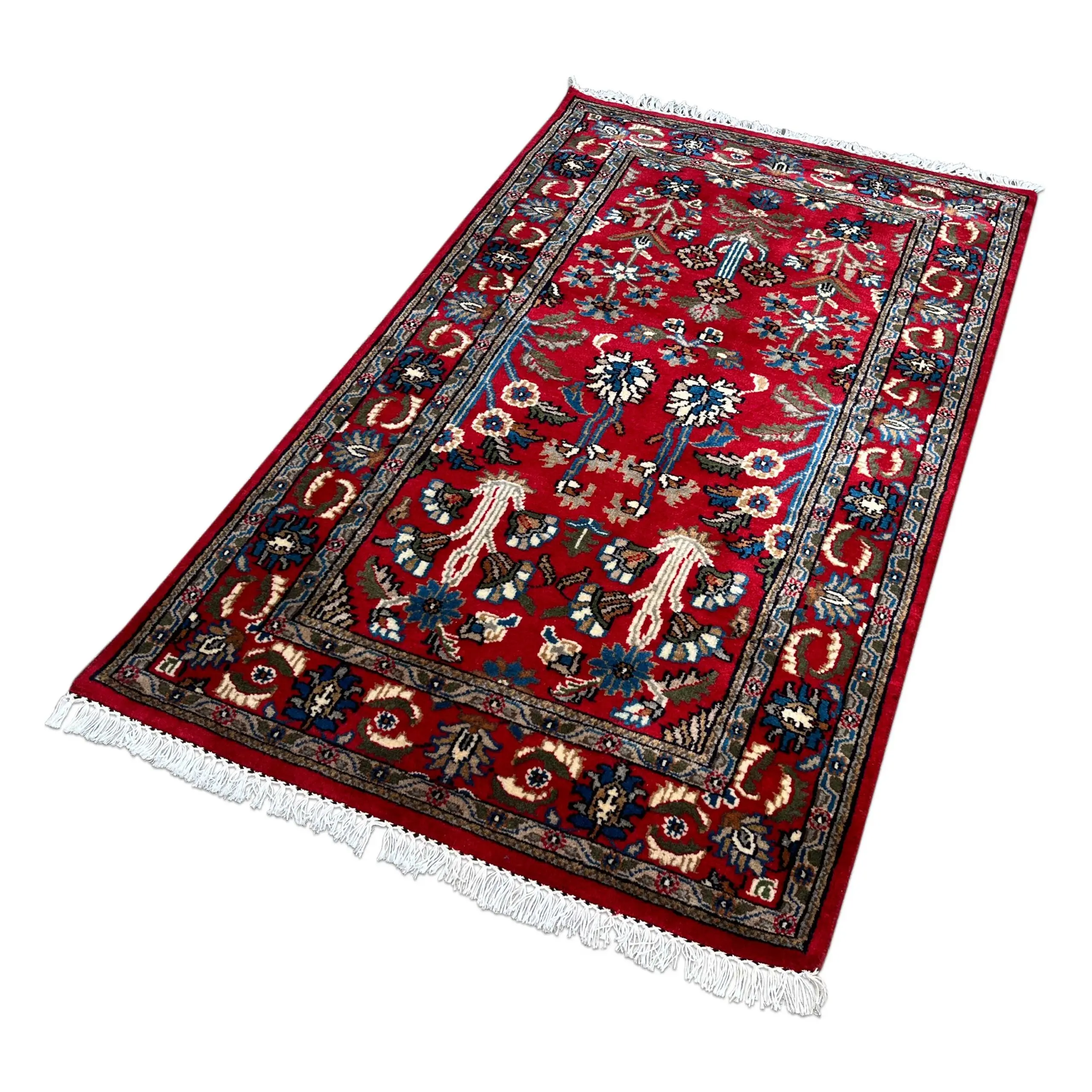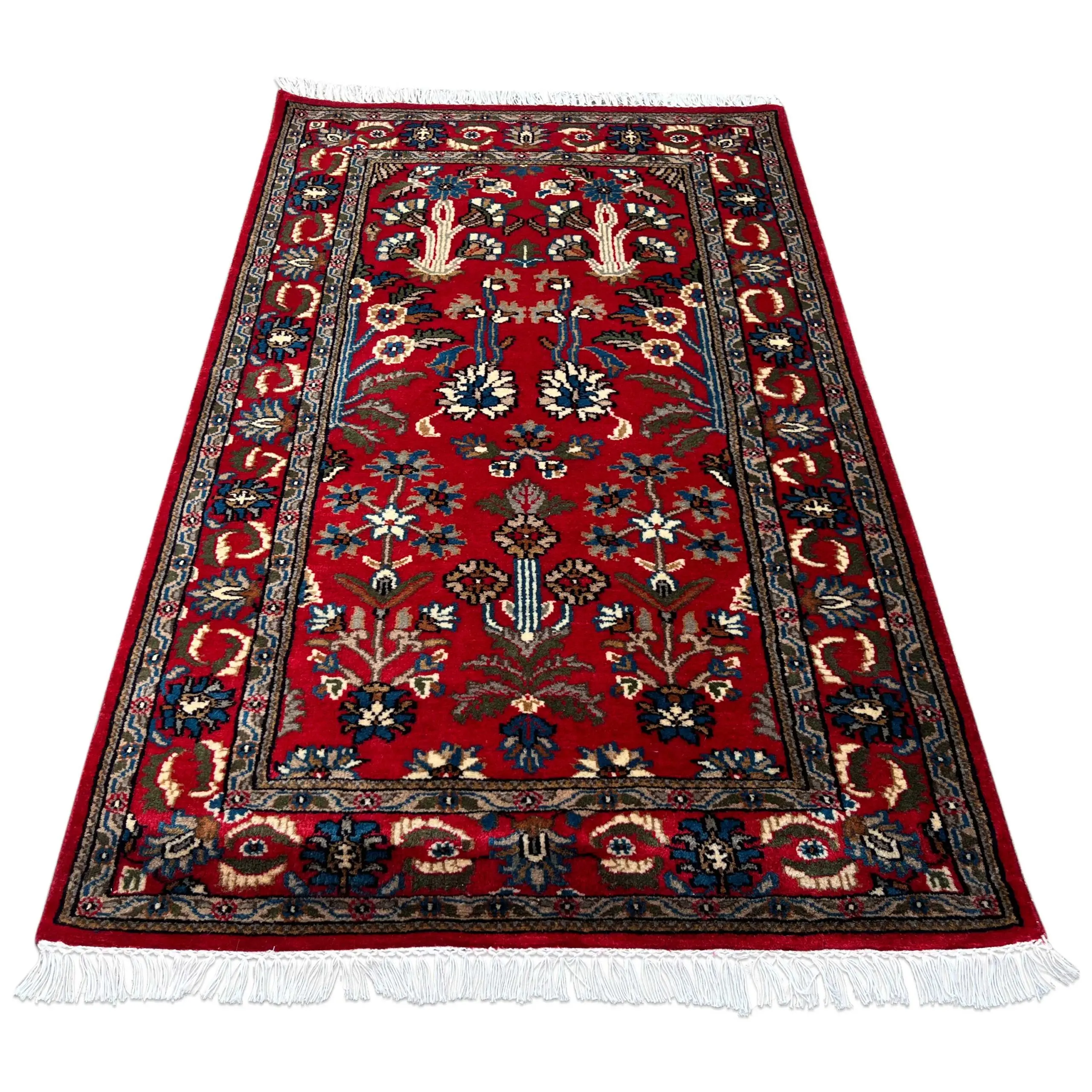 Now you can take home the classic beauty of Persian artistry with this 3×5 ft Red Floral Hand-Knotted Rug. Carefully crafted by master weavers in Jaipur, this traditional red carpet comes alive through deep crimson hues and complex floral designs. Crafted from a plush 100% fine wool pile, this hand-knotted wool rug is both stylish and long-lasting—perfect for living rooms, study spaces, or as a statement piece in hallways.
